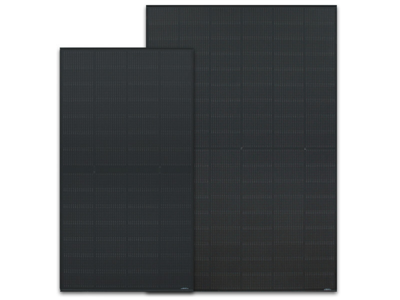 「低反射(防眩)太陽電池モジュール」。225W(写真左)と435(写真右)の2種類。