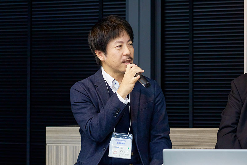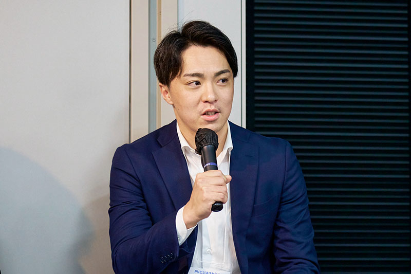 パネルディスカッションには、みずほ証券株式会社不動産投資銀行部の関川翔太氏、ニシム電子工業ESS事業推進本部の横尾貴志氏、ブルースカイエナジー取締役の羽田野修平氏の3人が登壇した。