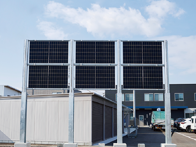土地の有効活用と高付加価値な売電を可能にする、垂直太陽光架台。営農型発電や駐車場のフェンスなど、さまざまな場所での活用が期待できる。