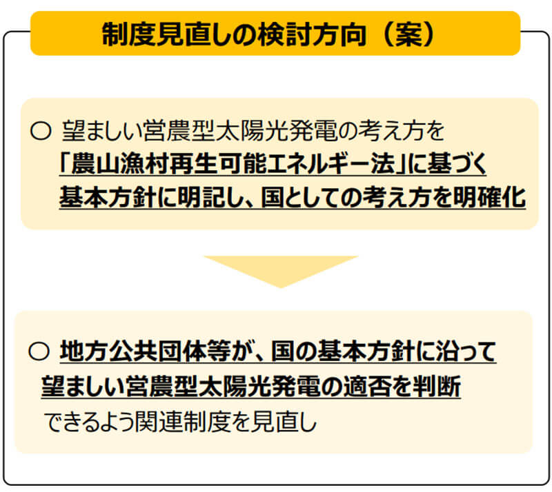 今回の制度見直しの背景には、2025年12月に政府が策定した「大規模太陽光発電事業に関する対策パッケージ」がある。ここでは、地域との共生が再エネ導入の大前提とされており、農林水産省は「営農型太陽光発電の望ましい姿」を明確にする必要があった。