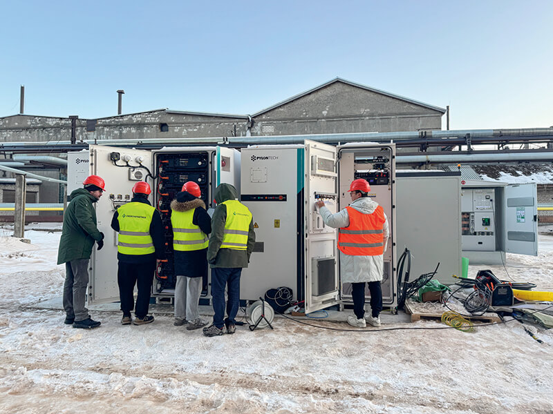 低温環境での設置・確認作業の様子。厳しい条件下でも短工期で据え付け可能であり、産業用・系統用の双方で採用が拡大している。