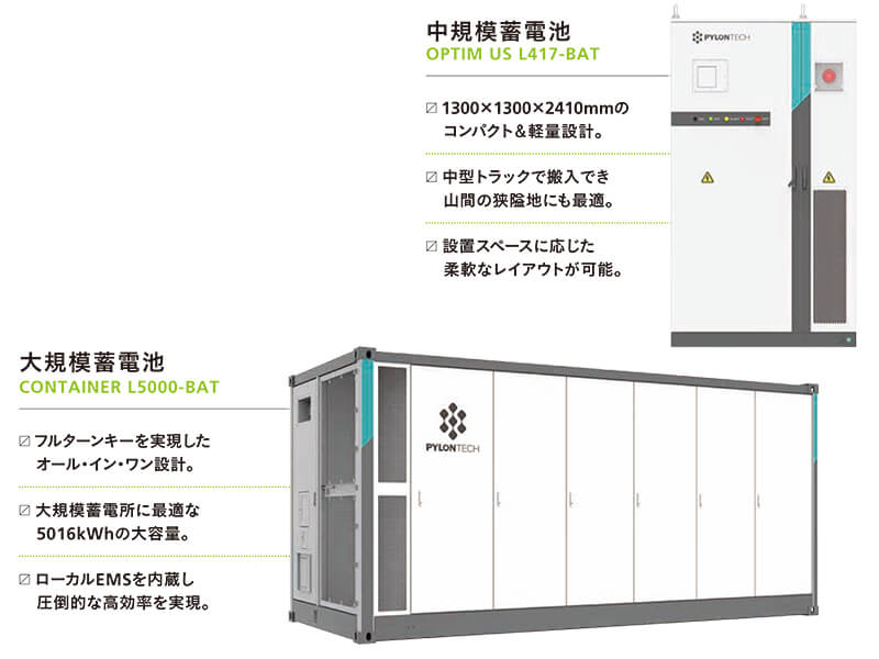パイロンテックは、住宅用から系統用まで幅広い定置型蓄電池のラインナップを有している。そんな中から、同社が今年、日本市場で強力にプッシュするのが、次に紹介する系統用の2製品だ。